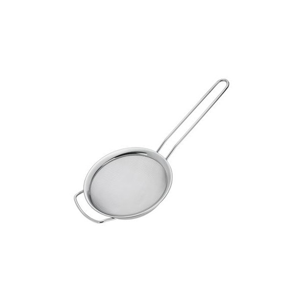 Escurridor de malla fina con patas y asas para mayor comodidad.