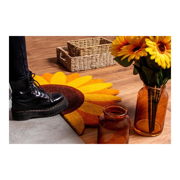 Tu hogar es tu templo, protégelo y no dejes pasar la suciedad con este felpudo con forma de girasol.