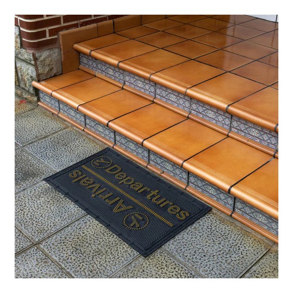 ¡Da la bienvenida y despídete con estilo gracias a este felpudo original "arrivals/departures"✈️ ! Inspirado en las clásicas pantallas de información en los aeropuertos, es perfecto para añadir un toque de viajero a tu puerta.