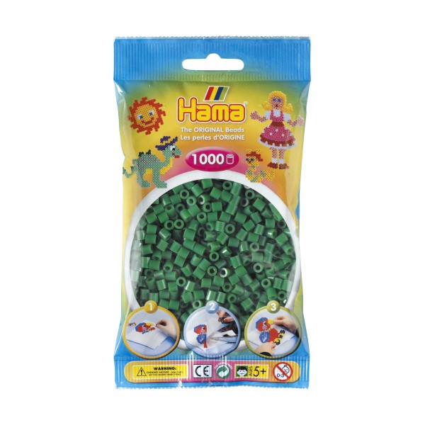 1000 perlas Hama originales Color Verde oliva Tamaño midi: 5 mm. 1000xRecomendado a partir de 5 años.