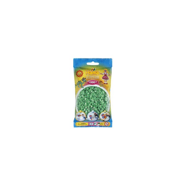 1000 perlas Hama originales Color Verde pastel Tamaño midi: 5 mm. 1000xRecomendado a partir de 5 años.