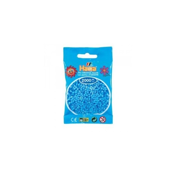 2000 perlas Hama originales Color Azul fluorescente Tamaño mini: 2,6 mm. 2000xRecomendado a partir de 10 años.