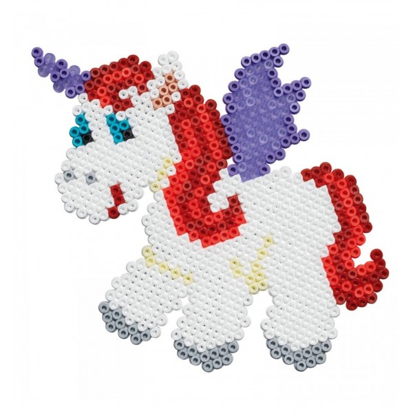 Incluye 4000 piezas hama midi. 1 tablero hexagonal y un tablero unicornio. Papel de planchar. Instrucciones y libro de ideas.