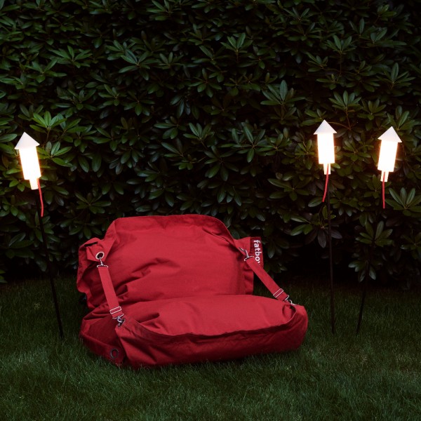 Prêt a Racket es un conjunto de tres luces de suelo, alimentadas por energía solar, en forma de pequeños cohetes. Listas para instalar en tu jardín o azotea. Ofrecen una luz cálida cuando comienza a ponerse el sol y se apagan automáticamente después de seis horas. Prepárate para un juego de luces que te hará brillar de placer.