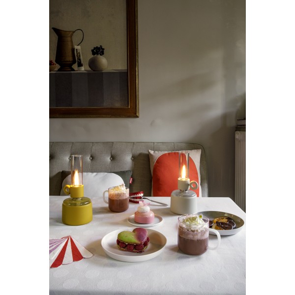 Flamtastique es la lámpara de aceite de gran tamaño para exteriores. Su hermana, Flamtastique XS, trae ese mismo ambiente de fogata al interior, a su mesa.