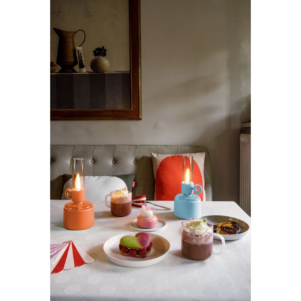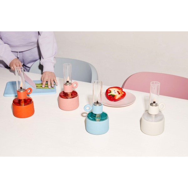 Flamtastique es la lámpara de aceite de gran tamaño para exteriores. Su hermana, Flamtastique XS, trae ese mismo ambiente de fogata al interior, a su mesa.
