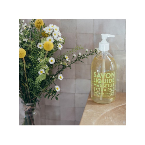 Jabón líquido con tacto sedoso y agradable. Enriquecido con aceites vegetales de almendra, oliva y pepitas de uva. Limpia e hidrata suavemente y sus aromas nos transportan a la Provenza. Frasco de cristal con dispensador, para rellenar. Cantidad: 500 ml Aroma: Verbena
