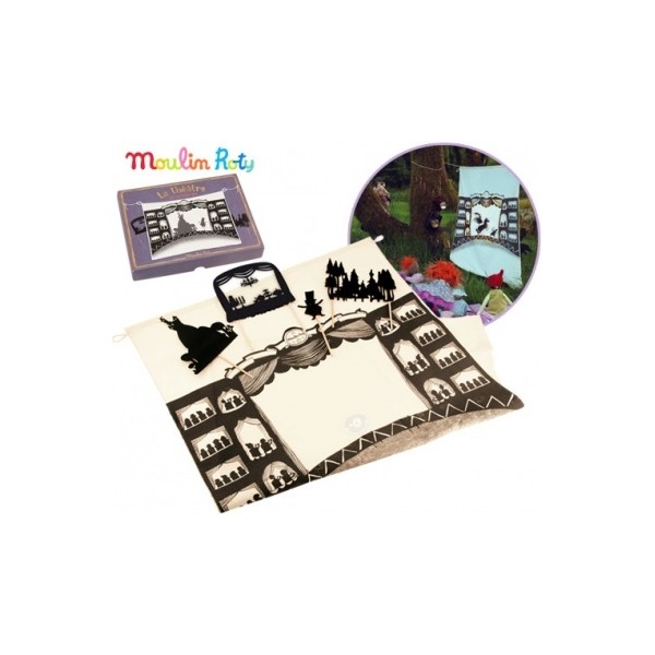 La clásica linterna para proyectar historias de Moulin Roty, ahora en caja regalo La parte interna de la tapa se utiliza como pantalla de proyección Hermosa caja con forma de pantalla de cine 5 discos incluídos No recomendado para menores de 3 años Dimensiones: 19 x 26 cm Tarjetas de invitación en mini sobres