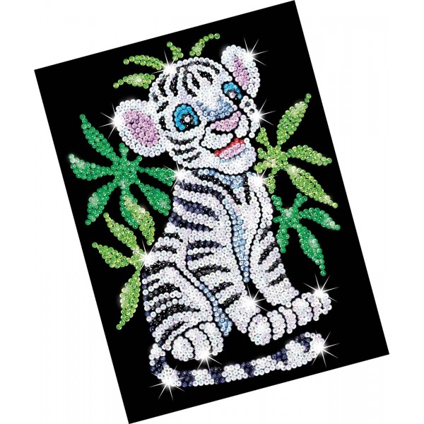 Contiene: Placa de poliestireno, fondo de papel impreso con el dibujo, lentejuelas de los colores necesarios, alfileres e instrucciones detalladas.