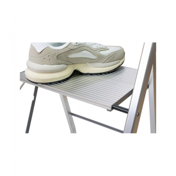 Escalera doméstica de aluminio con peldaño ancho. Peso máximo admitido 150 kg.