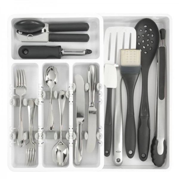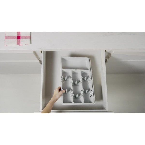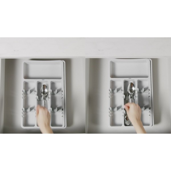Los pies antideslizantes mantienen los cubiertos bien organizados, incluso al abrir y cerrar el cajón.