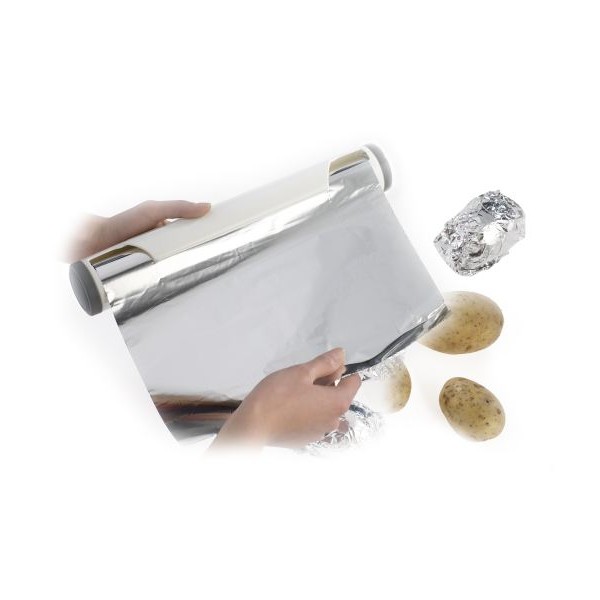 Práctico y fácil de usar. Los rollos de film y papel de aluminio se cargan frontalmente. Las cuchillas de seguridad realizan cortes rectos y limpios y dejan los rollos listos para desplegar la próxima vez. Incluye: 2 cuchillas de corte Soporte para film transparente Soporte para papel de aluminio Soporte ajustable para rollo de papel absorbente.