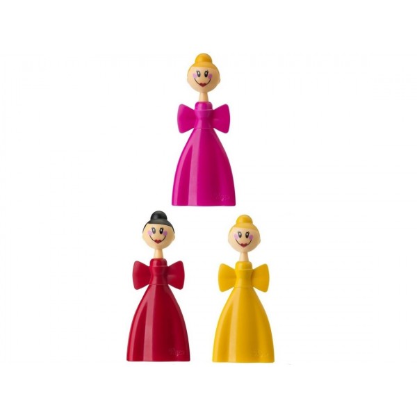 Diseño Dolls, en color rojo, amarillo y rosa
