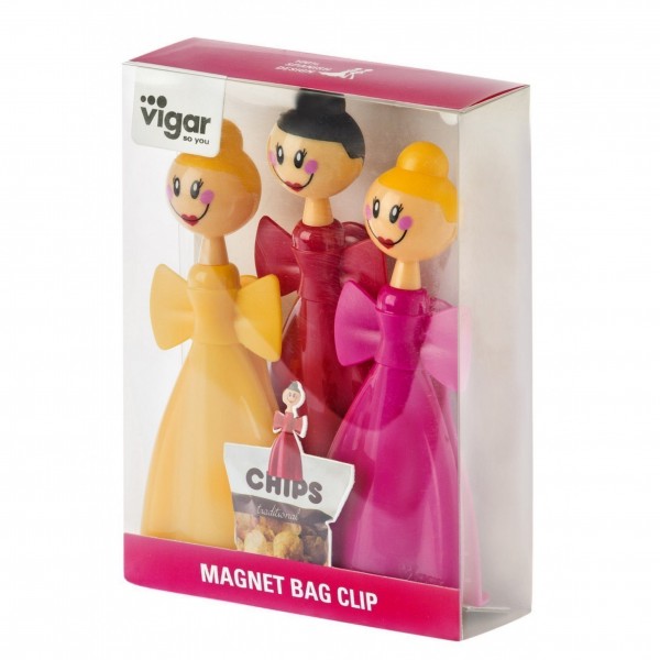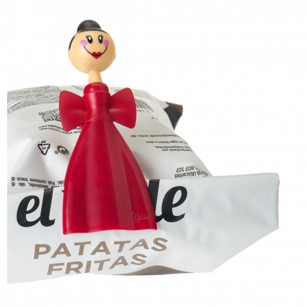 Cierre de gran tamaño Apertura de boca mas ancha que permiten el sellado perfecto de bolsas mas grandes. Boca antideslizante para un agarre mas seguro. Perfecto para cerrar bolsas, pegar notas, fotos, listas, etc. El imán permite pegarlo a la nevera y el agujero colgarlo en cualquier gancho, clavo. Medidas: 14,00 cm.