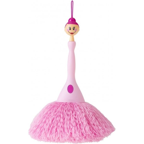 Con un simple movimiento de pie se puede regular el ángulo de la escoba en el punto ideal Se adapta a accesos estrechos y difíciles de llegar, también debajo de los muebles. Palo de aluminio, no pesa Cerdas emplumadas ideales para agarrar bien el polvo y la suciedad Orificio para colgar la escoba Mango antideslizante