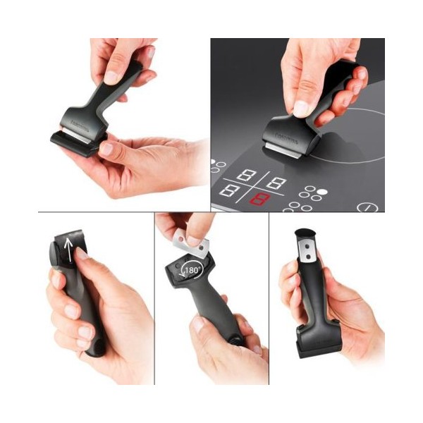 Elimina fácilmente las impurezas e incrustaciones de quemados de las placas de vitrocerámica e inducción, de superficies lisas de vidrio y de porcelana, etc.