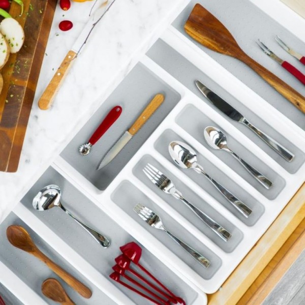 Bandeja extraíble de goteo Forma elíptica para acomodar a la pared ocupando menos espacio Gran capacidad con 3 compartimentos y 2 separadores Contorneado para depositar los utensilios en posición vertical Acero inoxidable. Apto lavavajillas Medidas: 21,3 x 12 x 16 cm.