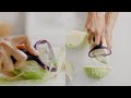 Cuchilla giratoria que garantiza resultados sin esfuerzos Seguro. Sin riesgos de corte en las manos, y cerrado para proteger los ojos sin lágrimas al cortar cebolla Grandes resultados aunque no se sea especialista Fácil de limpiar y guardar