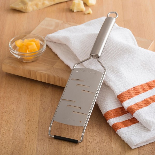El modelo clásico de rallador todavía más grueso. La cuchilla sigue estando fabricada en Estados Unidos por un proceso químico que corroe el metal y logra esas micro cuchillas extremadamente afiladas.