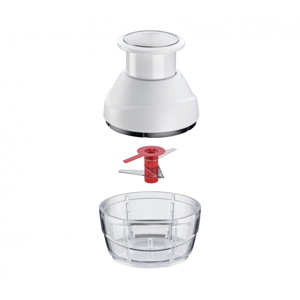 Sirve para cortar fruta, verdura y frutos secos. Pica ajos, cebollas, tomates, zanahorias, hierbas aromáticas, carne…; y también sirve para mezclar salsas (incluye accesorio). Dispone de 3 cuchillas completamente efectivas y la base es antideslizante. 13,30×13,30×11,80 860 ml de capacidad