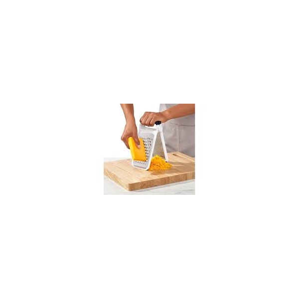 Preciso corte en "V" regulable en grosores de 1 a 9 mm Gire el pomo regulador a la izquierda o derecha para un corte en juliana de 6 mm o de 9 mm Carro protector para su seguridad Patas plegables para guardar de forma compacta o utilizarla encima de un Bowl 7 tipos de corte y un exprimidor acoplable Función lisa, ondulada, rallador, juliana y exprimidor