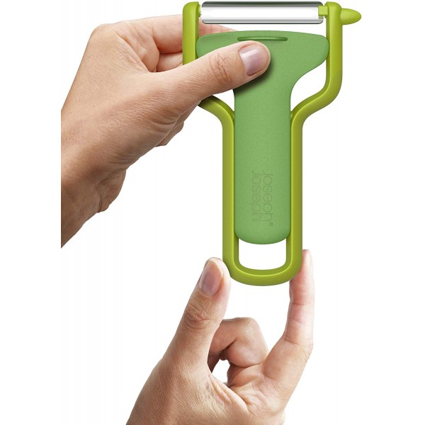 Todo integrado en una sola unidad Cuchillas de acero inoxidable endurecido ultrafino Plástico ABS reforzado y duradero apto para uso alimenticio 100% libre BPA Fácil y seguro de utilizar Protector para los dedos de máxima seguridad Apto lavavajillas - Grosor de corte ajustable: de 1 a 9 mm - Corte juliana y patatas fritas: 3 y 9 mm