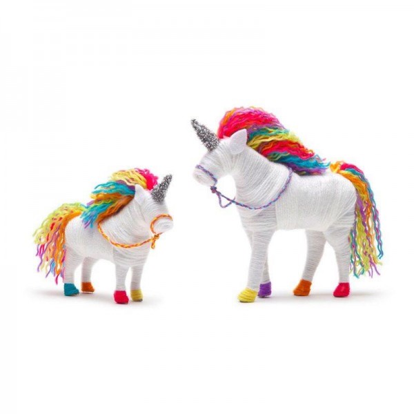 Contiene: 18 piezas de cartón para los armazones, 36 piezas adhesivas para unirlos, lanas blanca y de colores para cubrir el armazón, pegamento e instrucciones detalladas.