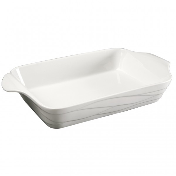 Fuente rectangular de horno. Porcelana resistente hasta 280º C. Lavable en lavavajillas.