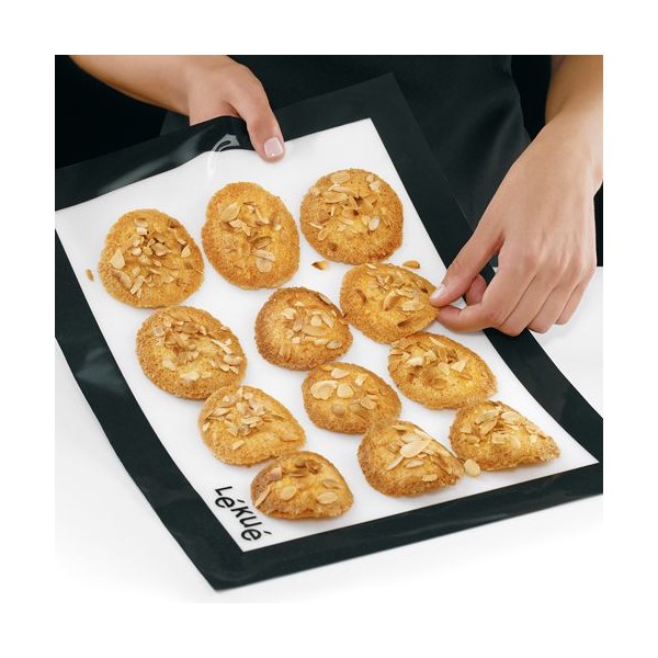 Bandeja de silicona con fibra de vidrio, mejora el crujiente de las galletas. Flexible, antiadherente, fácil de usar y guardar.