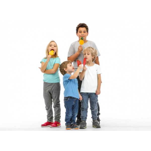 Incluye molde de silicona efecto 3D y 50 palitos desechables. 4 helados Apto para horno y lavavajillas. Hecho en Italia.