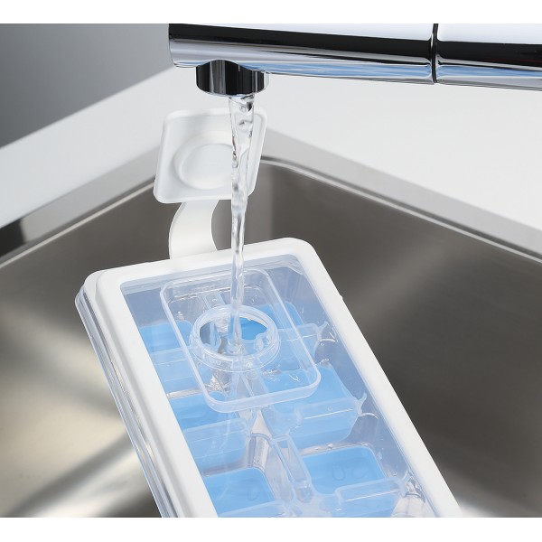 Tapa que evita que los cubitos cojan malos olores. Fácil extracción de los cubitos, de uno en uno, tan solo torneando la bandeja. Forma plana de la bandeja que permite apilar otras cosas encima. Apto lavavajillas. Medida: 35x14x4,50 cm
