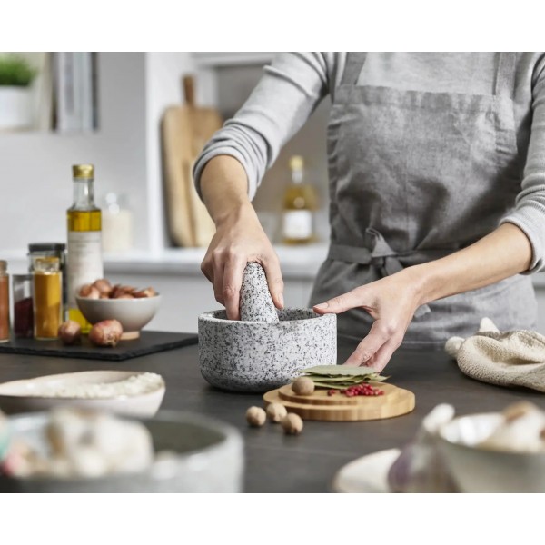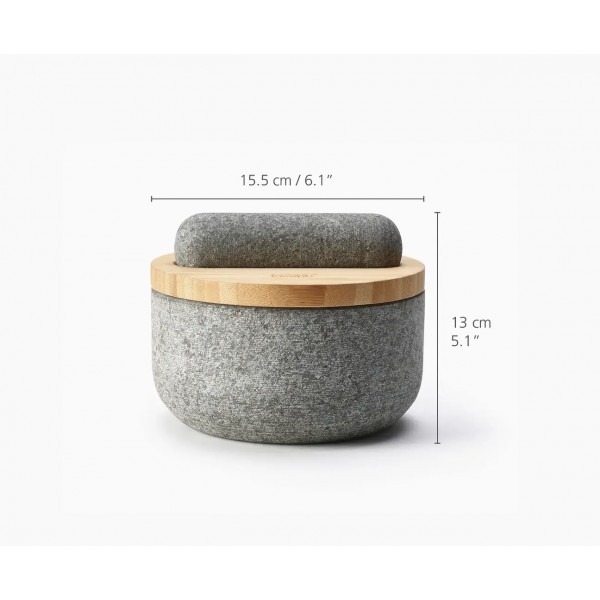 Gracias a la tapa de bambú, el mortero se guarda limpio y sin polvo