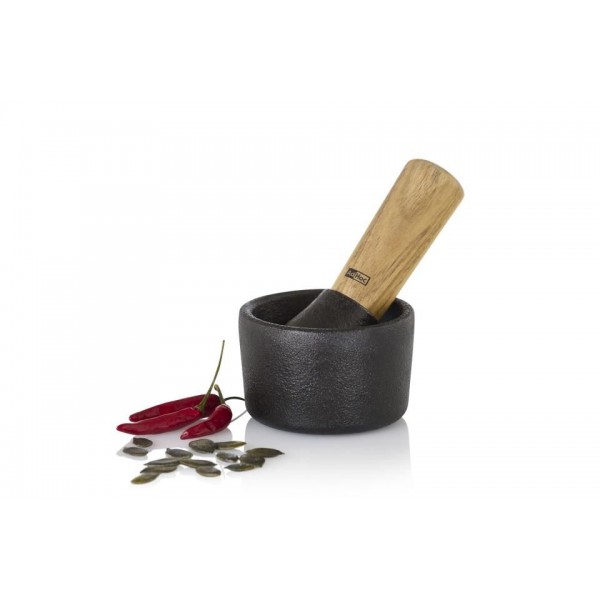 Mortero CAMO.8 hierro fundido y acacia- 8 cm