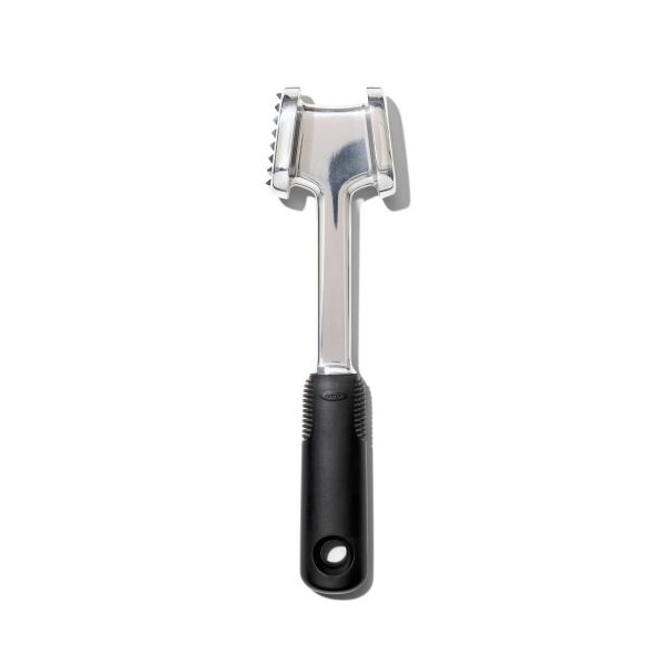 Los dientes en forma de pirámide son perfectos para romper cortes más duros, mientras que el lado plano facilita el aplanamiento de aves, cerdo y res hasta obtener un grosor uniforme para una cocción uniforme.