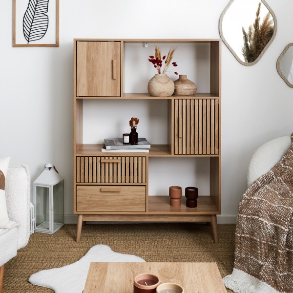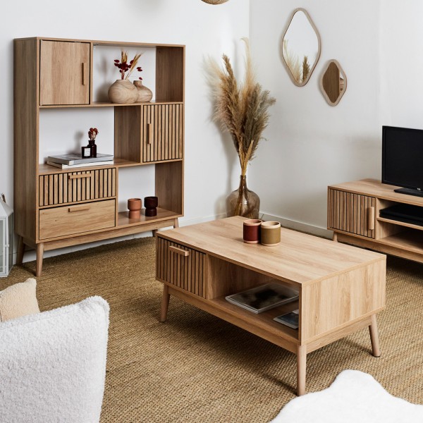 Te encantará este mueble de aspecto natural.Mueble con puertas a ambos lados y 2 estanterías centrales con agujeros en la parte posterior para pasar el cableado de reproductores DVD o consolas de videojuegos. Combínalo con otros muebles Klaus. Medidas: 117x40 cm; h.48 cm