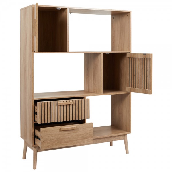 Con dos compartimentos con puerta y dos cajones.