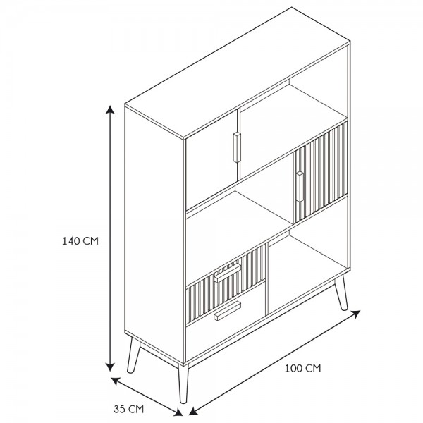 Largo: 70 cm.Ancho: 33 cm.Alto: 143 cm.Material: METAL Aglomerado y lámina de melaminaEstructura de metal