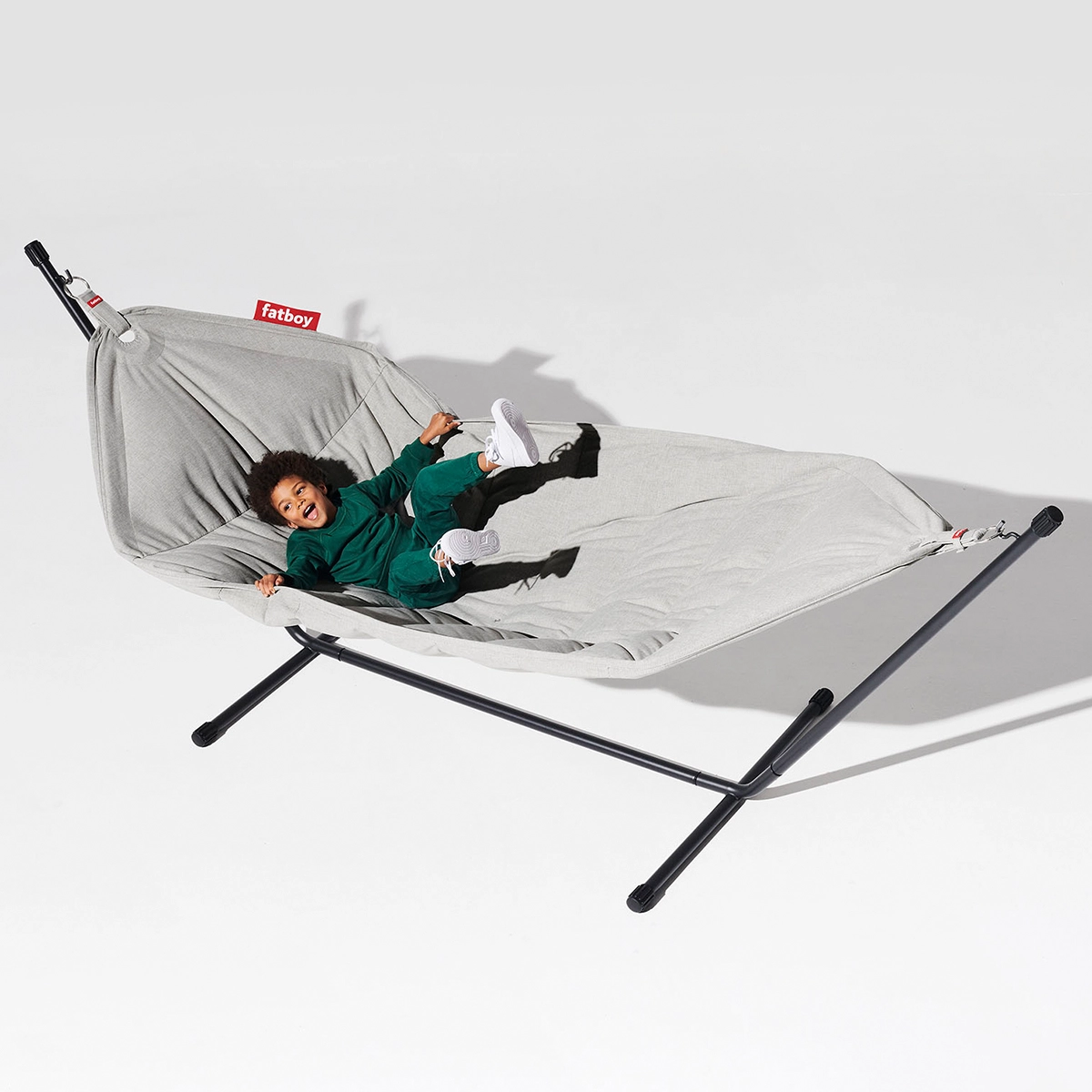 No tienes que ser una estrella del bricolaje para disfrutar de la vida en tu hamaca de exteriores. Simplemente monta la estructura, extiende la hamaca y engánchala. Determina la altura idónea y estarás listo para partir. A ningún lugar. Fatboy ha pensado en cada detalle. Como la Headdemock Cover, un impermeable a medida para tu hamaca. Y el Headdemock Pillow, el nivel de comodidad definitivo. ¿Necesitas más accesorios? Pide fácilmente todas las correas, tapones o argollas adicionales que necesites. Todo lo necesario para disfrutar de muchos años de descanso.