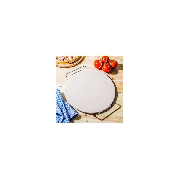 Para hornear pizzas al estilo horno de leña. Mantiene la pizza caliente en la mesa. Se hornea más rápido y queda crujiente y jugosa. se puede servir en la propia mesa ayudándose del soporte incluído.