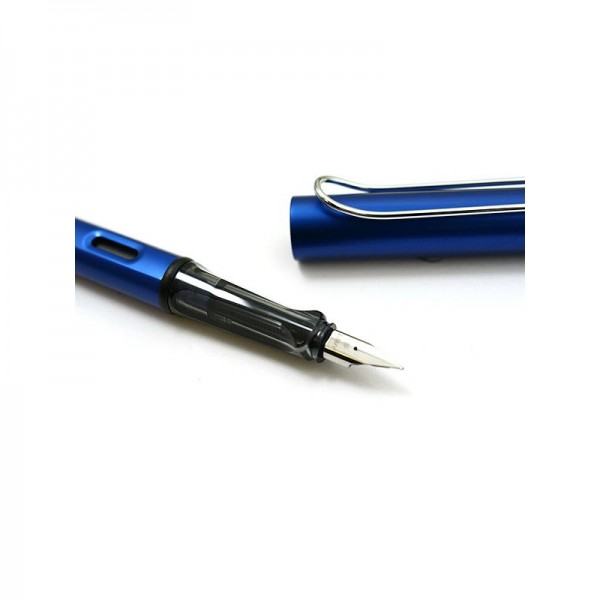 Estilográfica clásica con plumín de acero negro, empuñadura ergonómica.