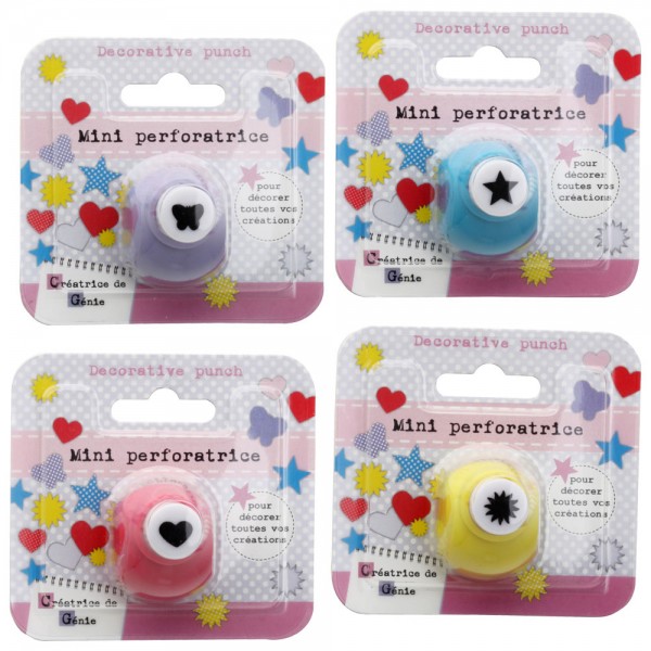 Adorna tus trabajos con esta bonita perforadora. Figuras surtidas: corazón, estrella, sol y mariposa. Tamaño 7 cms aprox.