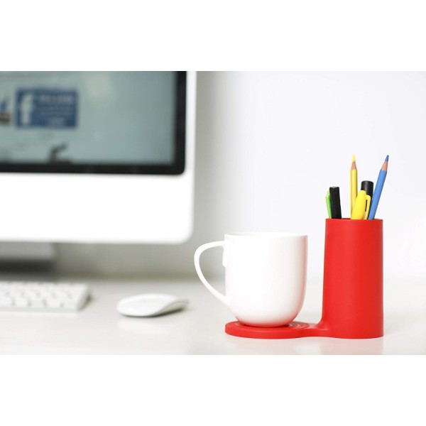 Siempre a mano un sitio ideal para tu taza, mientras sostiene us lapices.