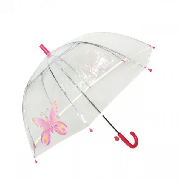 Paraguas transparente automático, de PVC con rayas 84 cm de longitud, 81 cm diámetro abierto Las varillas son de metal.