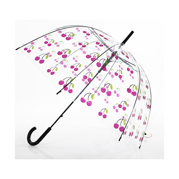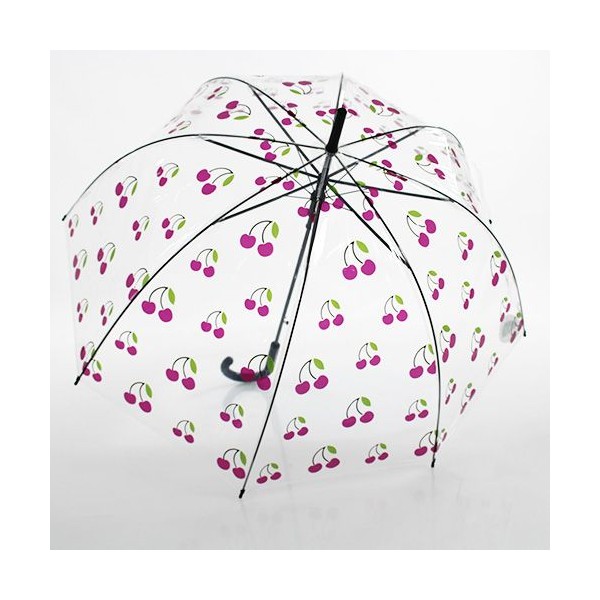 Paraguas transparente automático, de PVC con motivos de cerezas