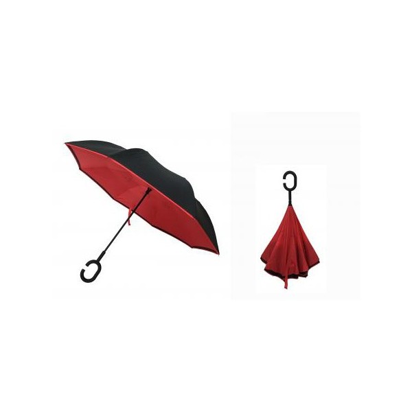 Diseño invertido para no mojarse al cerrarlo. Se sujeta solo de pie.
