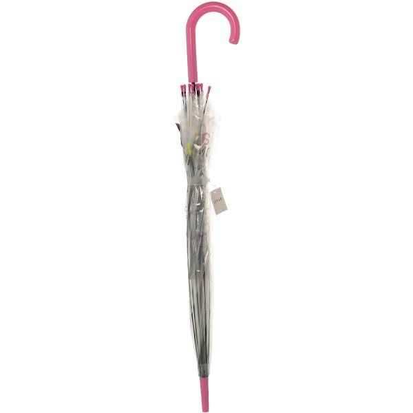 Paraguas transparente automático, motivos florales. 81 cm de longitud, 80 cm diámetro abierto Las varillas son de metal.