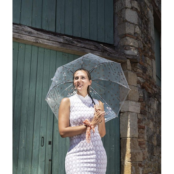 Paraguas transparente de 8 varillas anti viento, con motivos de lunares dorados