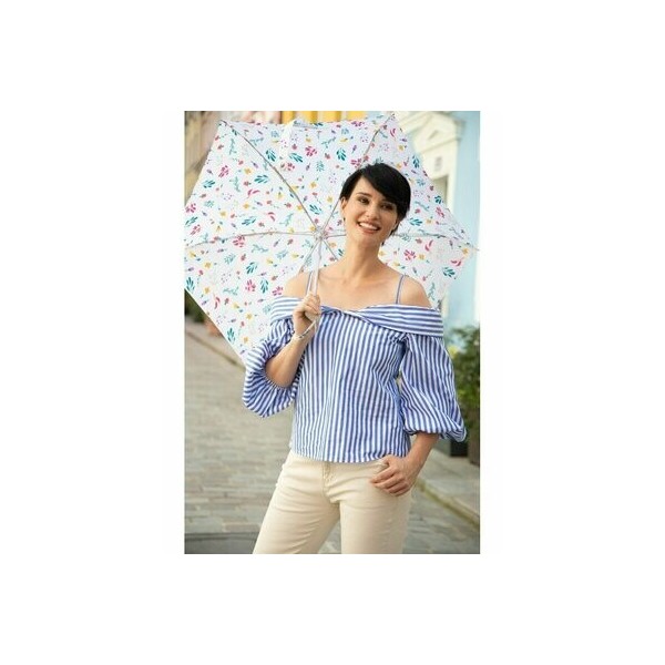 Se puede acomodar fácilmente en su bolso de mano (aunque sea el más pequeño). Es práctico para llevar todos los días. Totalmente abierto tiene un diámetro de 90 cms. que puede protegerlo de la cabeza a los hombros en los días de lluvia.