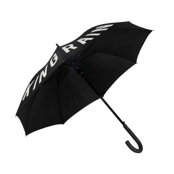 Paraguas de color negro con frase FUCKING RAIN en blanco.