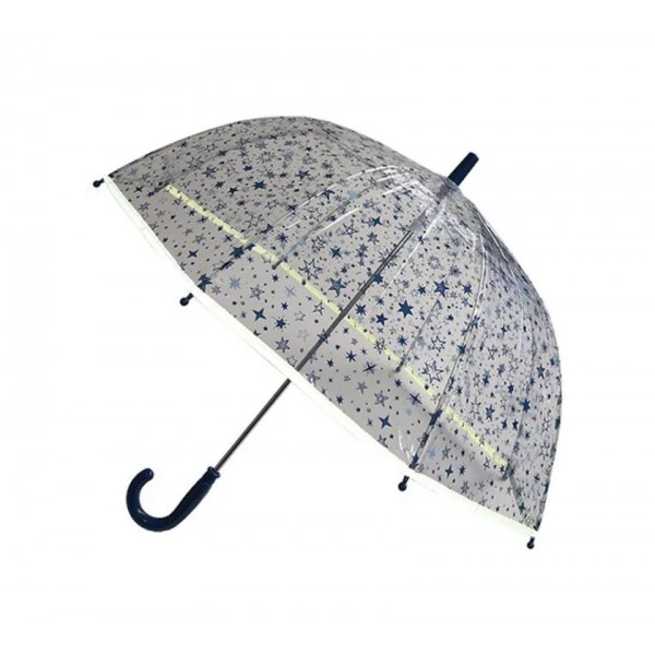 Paraguas transparente automático, de PVC con estrellas Las varillas son de metal.